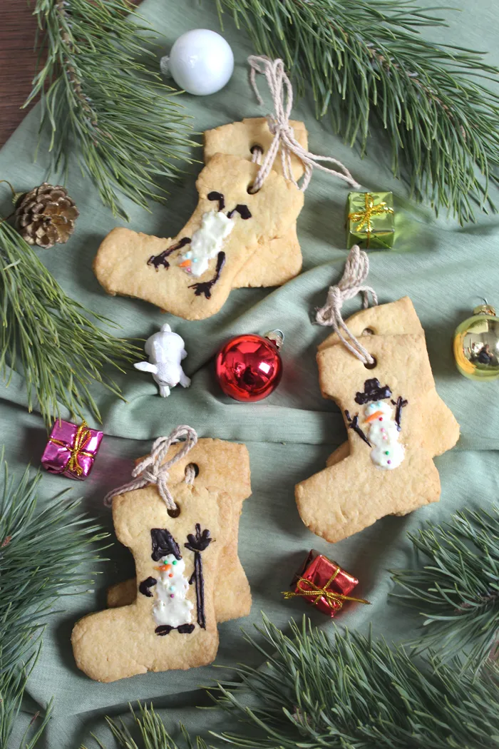 Помните, как здорово было в детстве на зимних каникулах погулять с друзьями во дворе, не смотря на мороз, покататься на санках, на коньках или слепить с друзьями снеговика. Зимы тогда были другие, было морозно, но спасали валенки: тёплые, снег холодный в них был не страшен. Новогодние праздники всегда относят нас хоть ненадолго в то время... Попробуйте испечь такое печенье в виде валенок, украшенных «вышивкой» со снеговиками. Вкусные, ароматные, рассыпчатые, пара таких «валенок» — отличный подарок детям и взрослым на праздник.