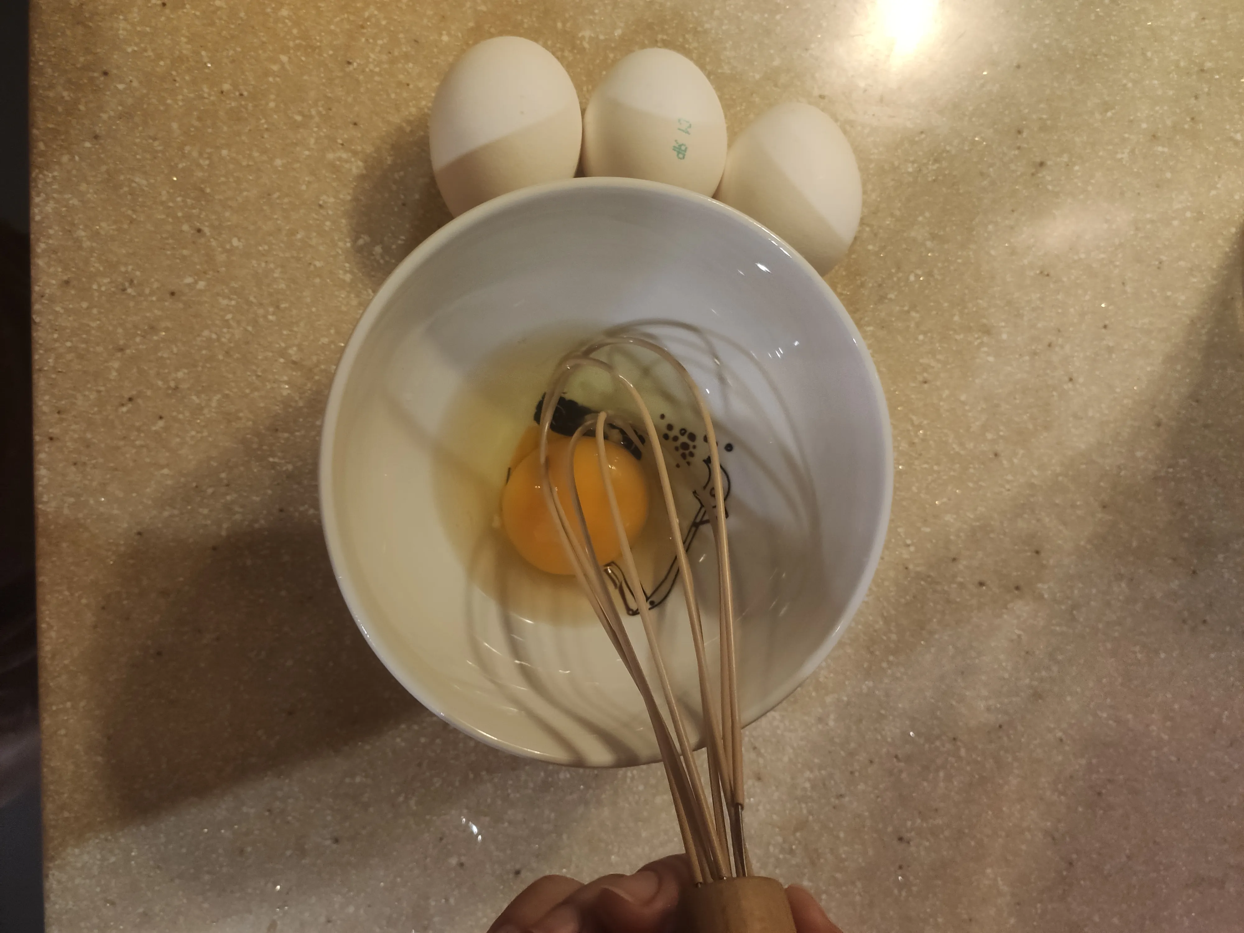 Как только начнёт закипать смесь, аккуратно введите просеянную муку и выключите огонь. Яйца, заранее вытащенные из холодильника, перемешайте в отдельной тарелке и малыми порциями введите в тесто, постоянно помешивая.