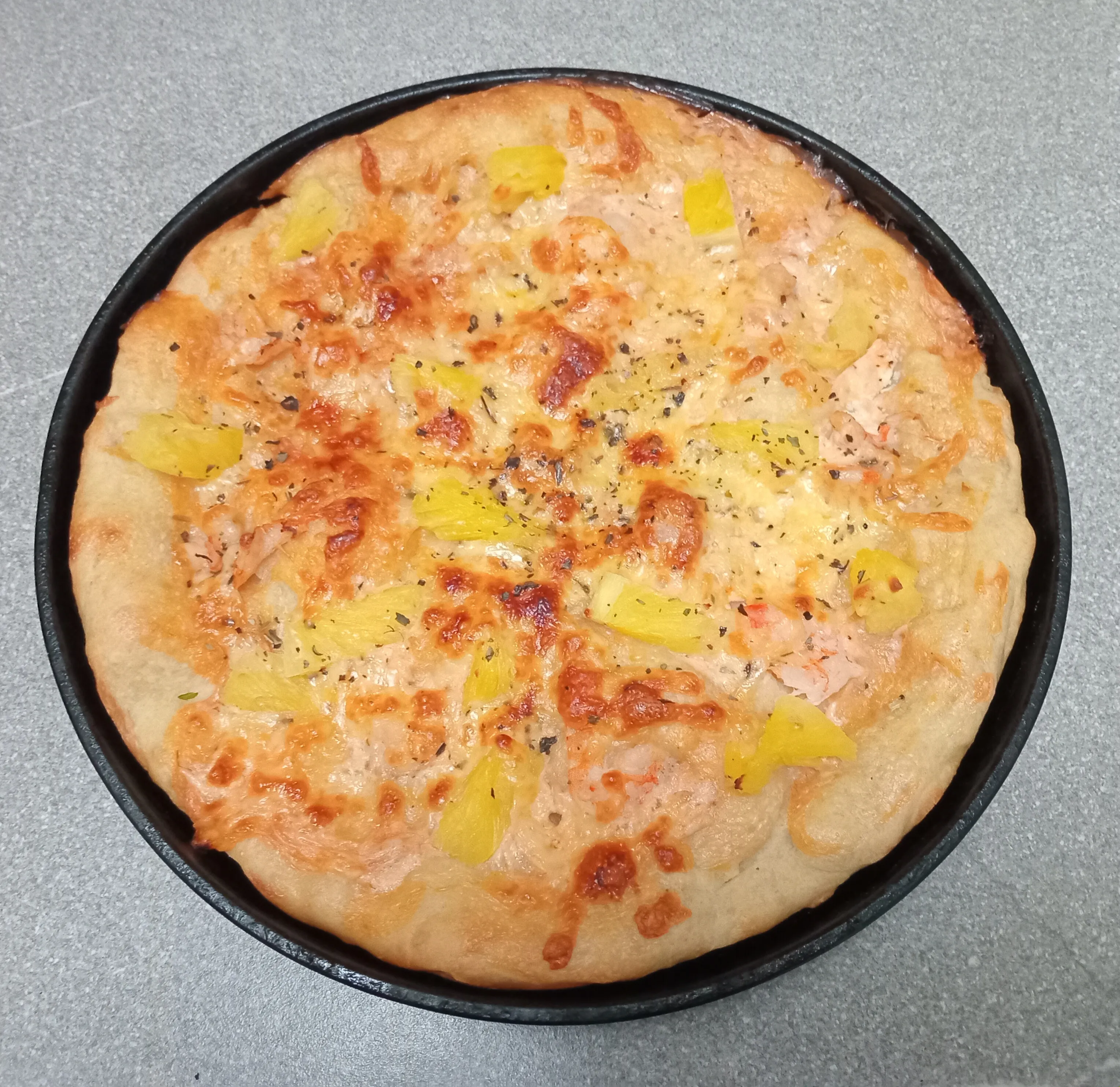 Разложите нарезанный кусочками ананас. Посыпьте натёртым сыром.