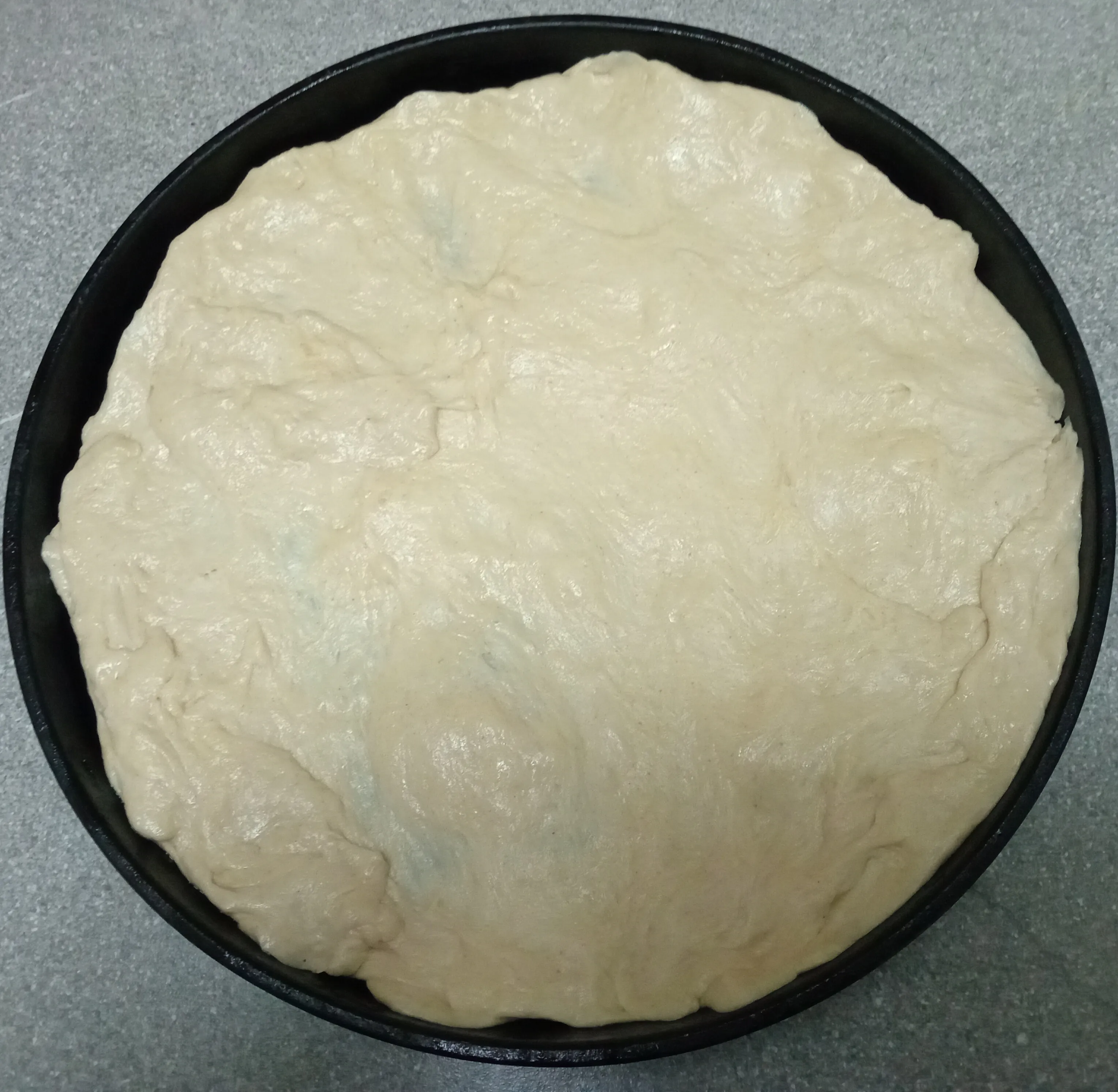 Тесто для пиццы тонко раскатайте и выложите в смазанную растительным маслом форму.
