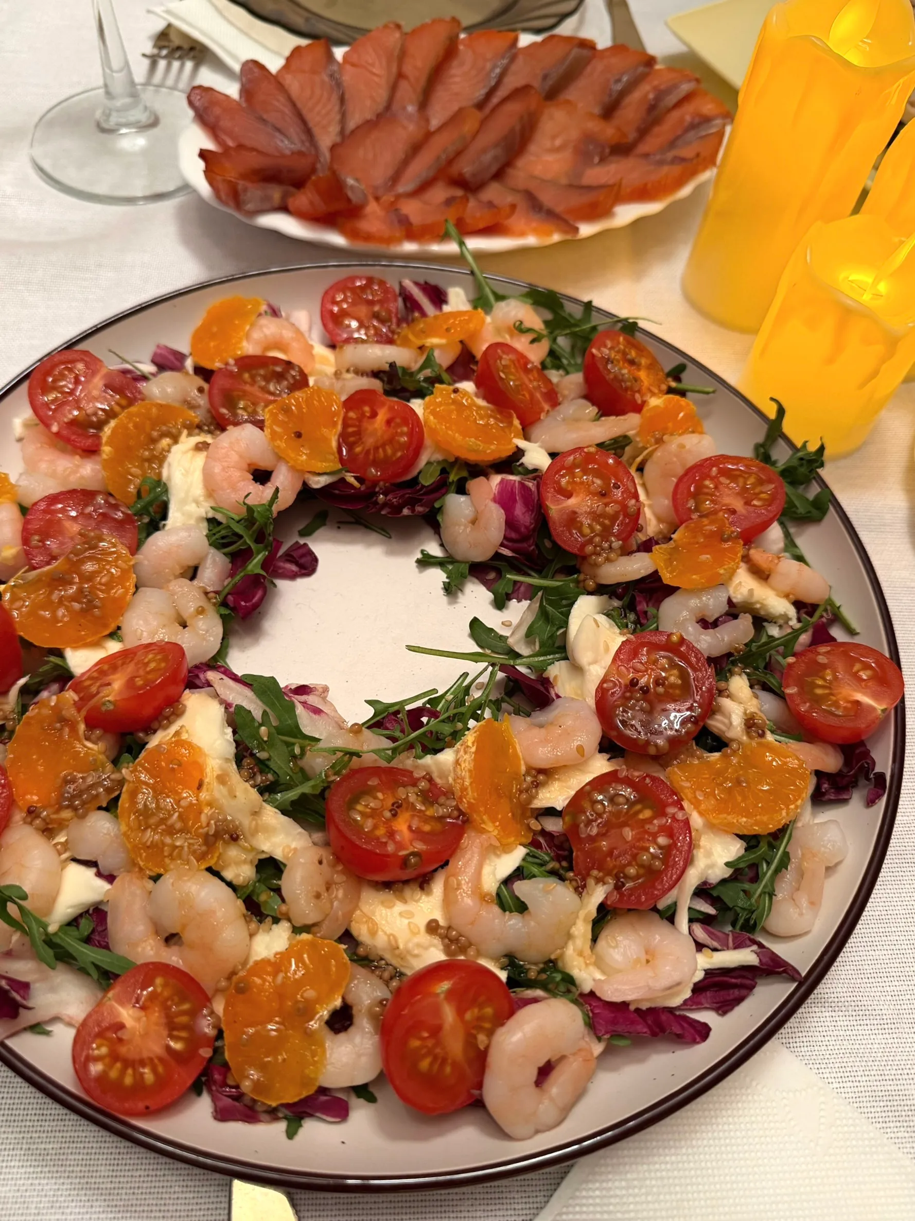 Лёгкий, свежий салат. Каждый ингредиент создаёт великолепный контраст вкусов! Сочные креветки сочетаются со свежей горчинкой руколы, сладкие дольки мандарина раскрываются рядом с нежной сливочной Страчателлой, а томаты черри добавляют яркую кислинку. Яркие цвета салата будут гармонично смотреться на праздничном столе!