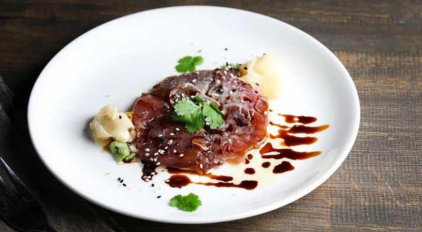 Сашими тунец / кунжутное масло / имбирь / соевая карамель