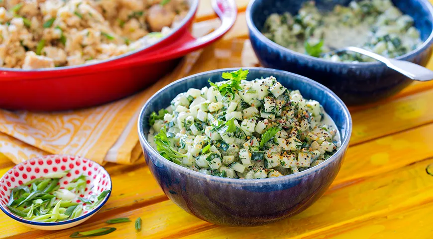 Индийский салат “Райта” с огурцами и зеленью