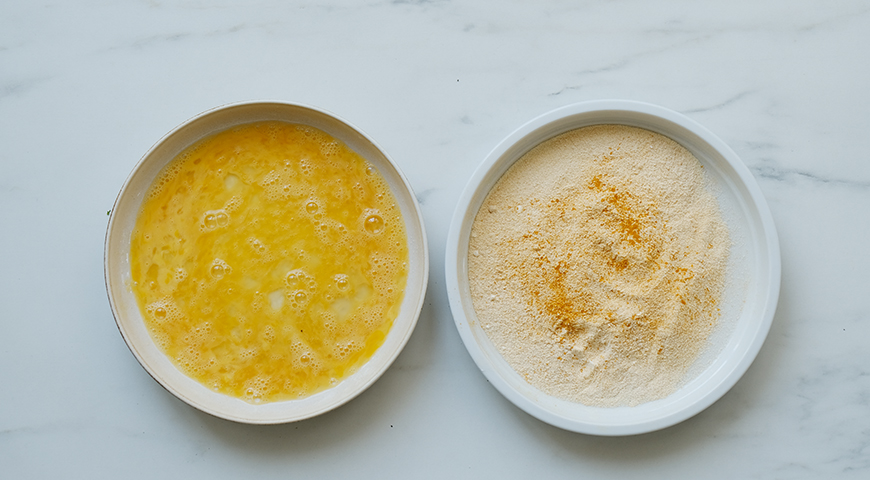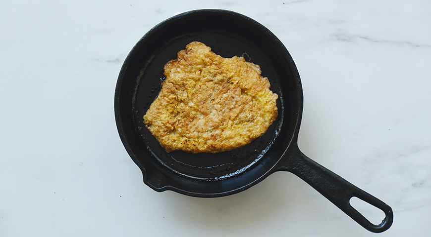 Аккуратно отбитые куски свиного мяса, даже просто поджаренные на сковороде, если их не пересушить, – очень вкусная штука. Но в яичном кляре они и смотрятся гораздо более интересно, и вкус этот кляр очень обогащает. Для красоты и дополнительной пользы для здоровья добавим в кляр куркуму – природный желтый краситель и эффективное противовоспалительное средство.