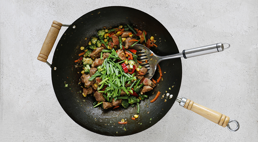 Шаг 4 - Всыпьте зеленую часть зеленого лука, прогрейте еще, помешивая, 1 мин. Снова перемешайте и подавайте.