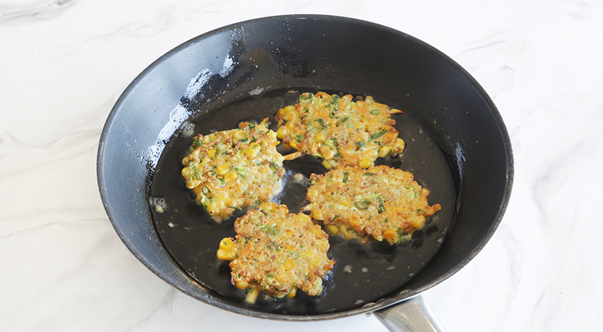 Оладушки с кукурузой (эти делаются в корейском стиле) – всегда восторг! Пока в продаже есть молодая молочая кукуруза, готовьте из нее – она варится всего 7 минут. А как сезон закончится, используйте замороженную или консервированную. Если у вас найдется пара лишних минут, сделайте йогуртовый соус для подачи рубленой зеленью (особенно здорово добавить свежей мяты с укропом) и лимонным соком. Тогда будет совершено восхитительно!