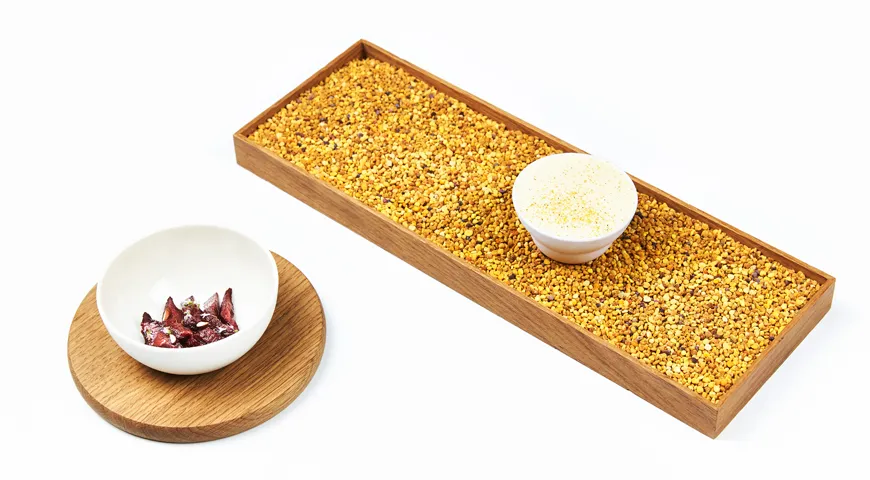 Мороженое из воска и пыльцы и сушеное яблоко с темным медом и бузиной