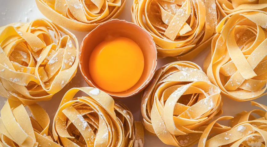 3. Приготовьте вкуснейшую домашнюю яичную пасту, как у настоящий итальянской хозяйки. Яйцо делает тесто особенно нежным и податливым, но долго такая паста не хранится: она хороша только свежей. Точно соблюдайте пропорции и последовательность действий: сначала в мерную чашку разбейте яйцо и размешайте, потом долейте воду или сок до нужного уровня. И все получиться!