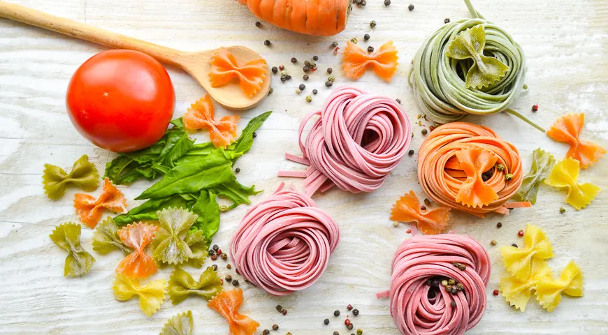 1. Играйте с цветом. В тесто можно добавить свежевыжатый сок, чтобы получить яркие насыщенные оттенки: например, свекольный сок подарит пасте бордовый цвет, томатный – красный, морковный — оранжевый, шпинат — зеленый. Добавление в тесто разведенного в жидкости шафрана или порошка карри даст пасте солнечный желтый цвет, а чернил каракатицы — интригующий черный.