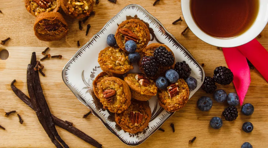 Острое печенье с пеканом - адаптация рецепта популярного американского «пеканового пирога», который обычно готовят в День Благодарения и на Рождество. Особую пикантность этому печенью придают молотая гвоздика, имбирь и корица, которые в сочетании с большим количеством ореха, делают начинку менее приторной.