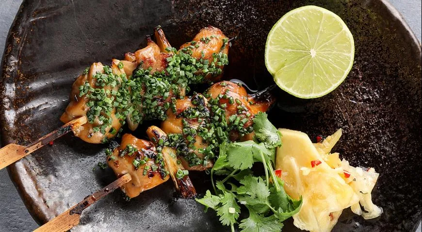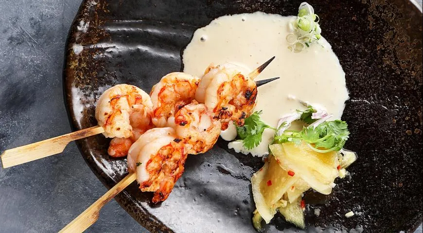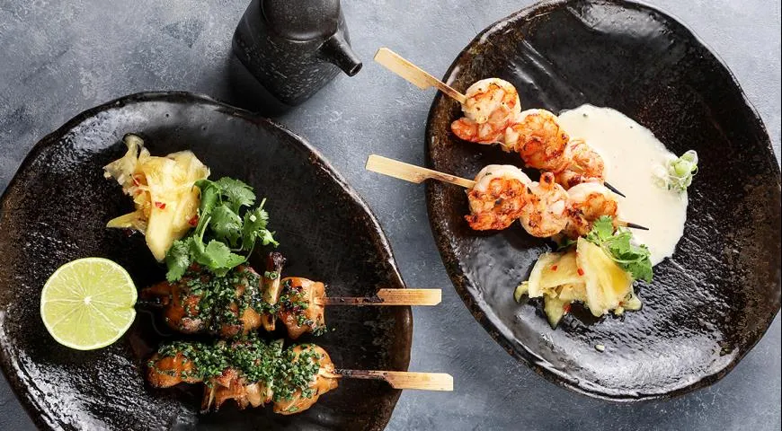 В обновленном меню ресторана салат с хрустящей уткой и кешью (680 руб.), а также утка Wong – (1650 руб.) готовятся с соблюдением традиций южно-китайской кухни. В разделе популярных блюд на гриле появились шашлыки сатай из тигровых креветок (540 руб.) и из цыпленка (460 руб.), корейка ягненка (690 руб.), цыпленок с африканскими специями (790 руб.) и осьминог с печеным картофелем и томатами (1100 руб.). Десертная карта ресторана осталась неизменна. Здесь по прежнему стоит обратить внимание на фирменный шоколадный фондан «Зеленый чай» (420 руб.) и Тапиоку манго (560 руб.).