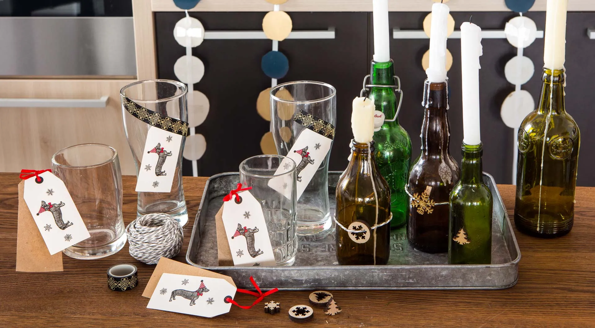Фуршетный стол для молодой компании позволит гостям свободно перемещаться с бокалами в руках, но только нужно обязательно подписать бокалы, для этого можно использовать смешные карточки с именами. Пустые пивные бутылки можно использовать в качестве подсвечников.