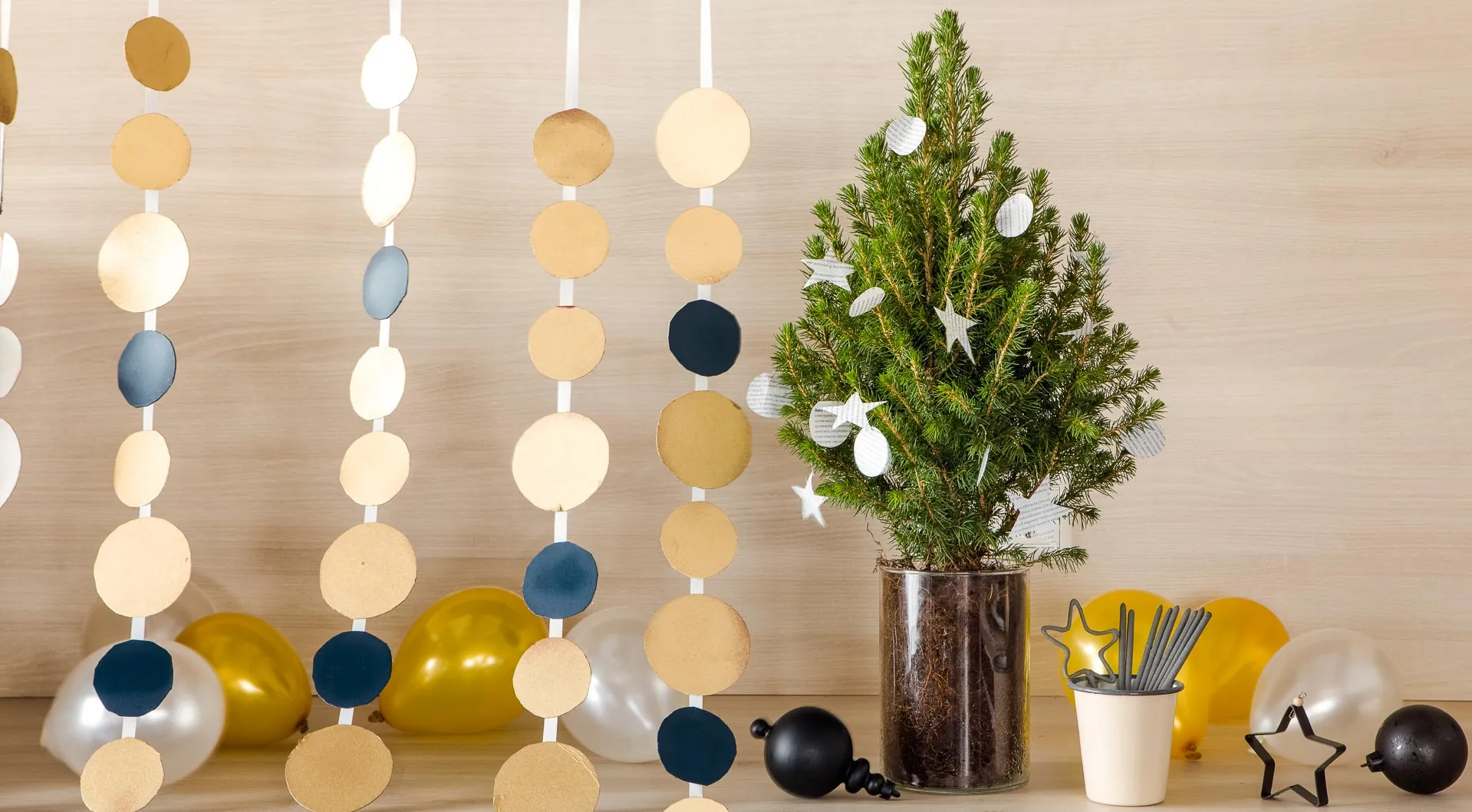 Какой же Новый год без елки? Предлагаем украсить интерьер совсем молодыми елочками, которые будут расти и дальше, а вместо помпезных стеклянных шаров используйте бумажные, сделанные своими руками, и даже воздушные! Пусть следующий год будет таким же легким!