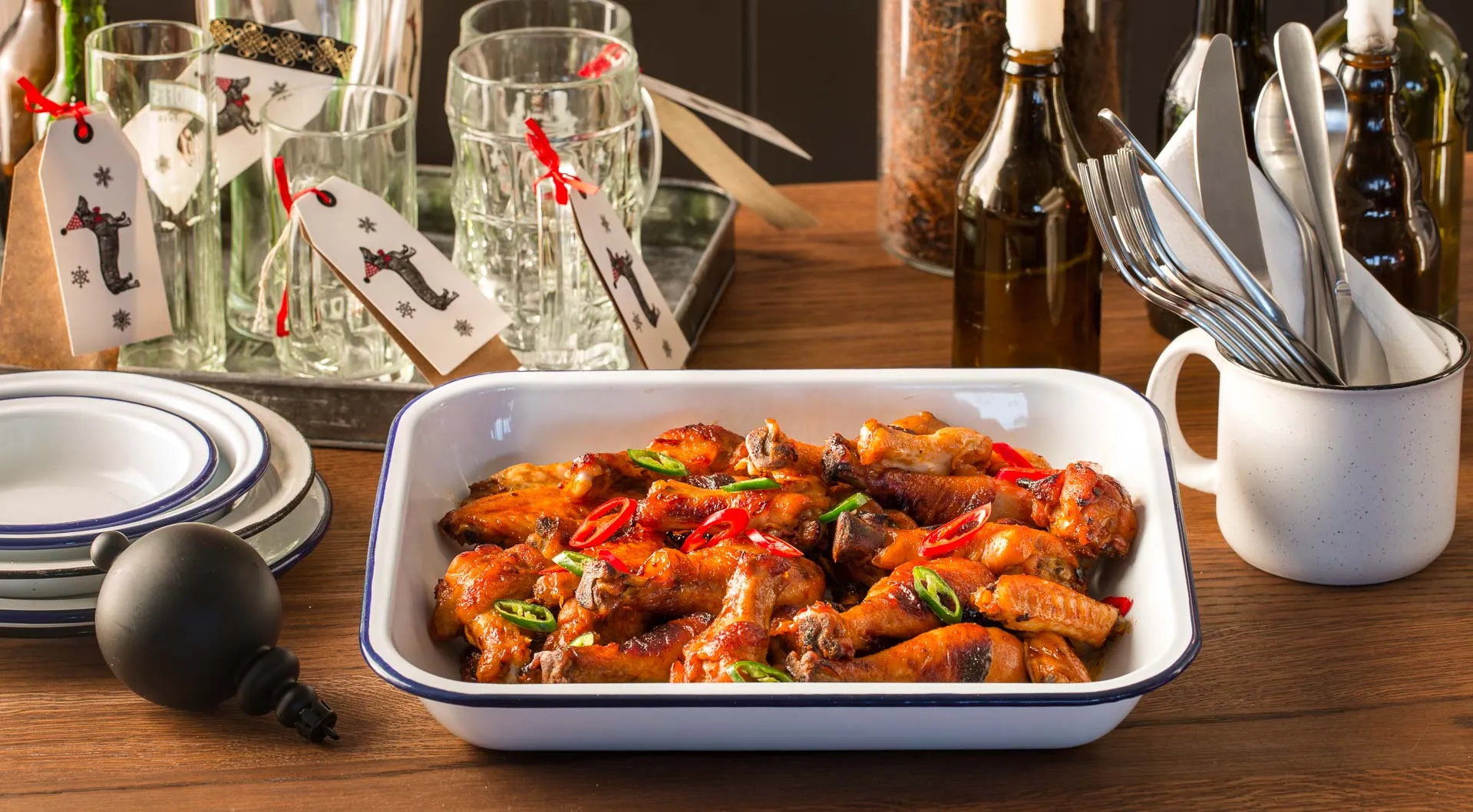 Продолжая тему "ручной еды", предлагаем и в качестве основного блюда использовать куриные крылышки и ножки. Во-первых, ингредиенты для этого блюда вполне доступны, во-вторых, их легко приготовить, в-третьих, это очень вкусно!