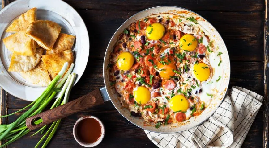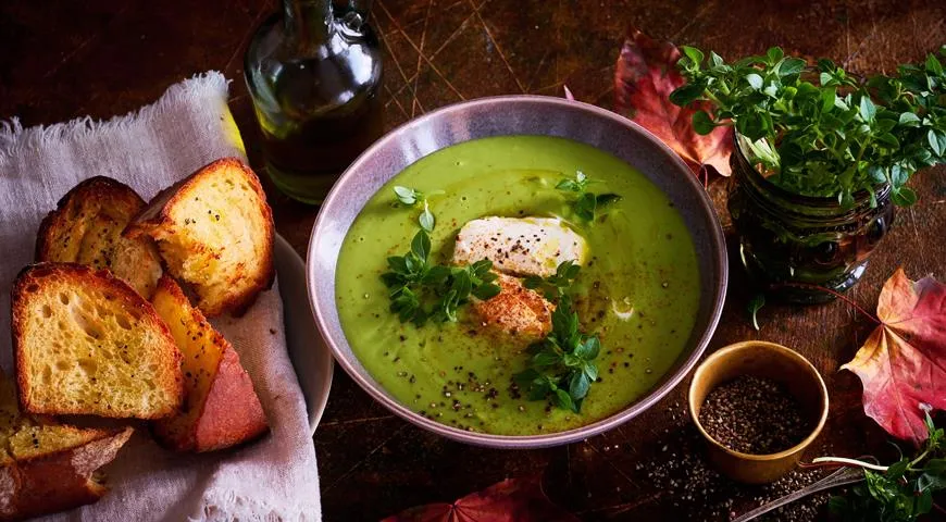 Meatless monday – понедельник без мяса, к этой акции с каждым годом присоединяется все больше людей по всему миру. Проведем этот день вкусно и с пользой для здоровья. На завтрак готовим сытную яичницу с фасолью и сосисками. Не удивляйтесь, сосиски используем постные. А пока жарится яичница, выпейте витаминный коктейль из овощных соков, это дополнительный вклад в укрепление иммунитета. На обед приготовим легкий суп из зеленого горошка, после такого обеда у вас не возникнет чувства тяжести. Добавьте в рацион порцию белка, съешьте немного взбитого творога, этот перекус наполнит вас энергией до вечера. А на ужин у нас блюдо с добавлением бобовых, альтернативному источнику белка – котлетки из запеченной тыквы с нутом. Два соуса на выбор сделают это блюдо ярким и запоминающимся.