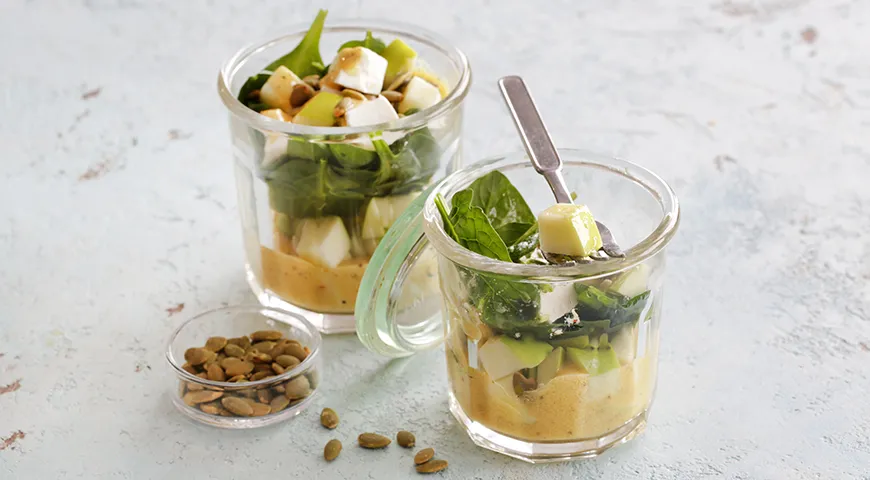 Cалат с яблоком, шпинатом и сыром в банке с собой