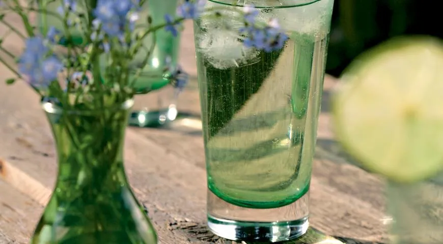 Нарежьте лайм кружочками, положите в банку с крышкой вместе с веточками мяты. Разомните толкушкой или черенком деревянной ложки. Залейте кипящим сиропом и закройте крышкой. По дороге на пикник ароматный сироп остынет до комнатной температуры. На месте разбавьте сироп холодной газированной водой, регулируя крнцентрацию по вкусу.