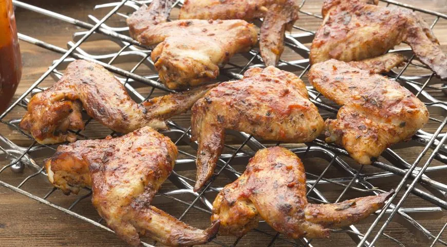 Пока кукуруза остывает, начните жарить маринованные крылышки над умеренно жаркими углями.