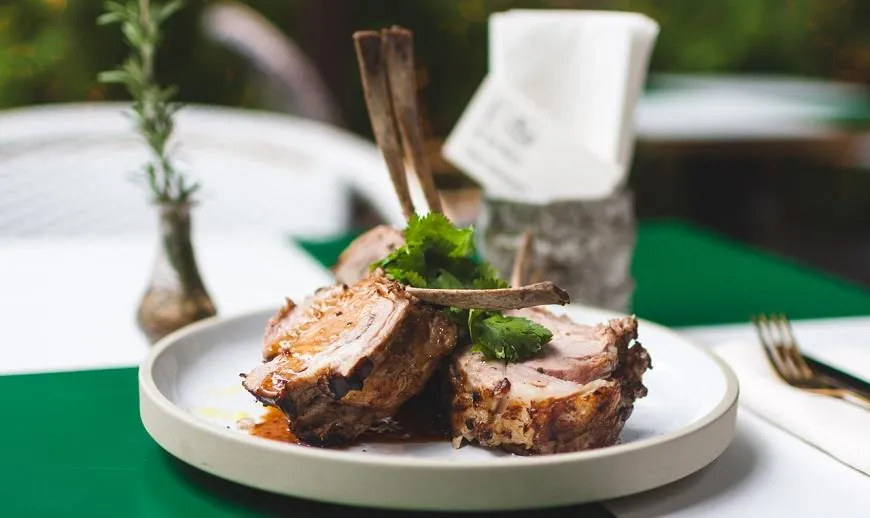 За кухню отвечает шеф-повар Джакомо Ломбарди (Ugolek), построивший меню на блюдах в совершенно разных стилях: есть и классические блюда, и авторские твисты, и азиатские мотивы, например, дим самы в ассортименте. Но все же центральное место на открытой кухне занимает японский гриль робата: каре ягненка на гриле (900 руб.), баранья нога (1100 руб.), корюшка (750 руб.), осьминог (1300 руб.), молодая капуста на углях (350 руб.), кукуруза (350 руб.), запеченный картофель со сметаной (350 р.) и др.