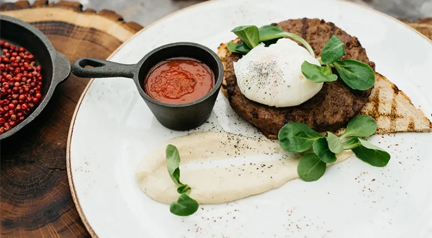 Рубленый бифштекс из мраморной говядины с кремом из цветной капусты