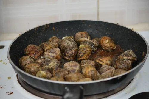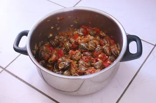 И было очень даже вкусно! На что это похоже? Может быть, на морепродукты... Улиток было так много, что осталось на следующий день :)) Я призвала в помощь интернет, и мы потушили улитки с томатами, предварительно обжаренным луком и чесноком. Так мне они понравились еще больше!