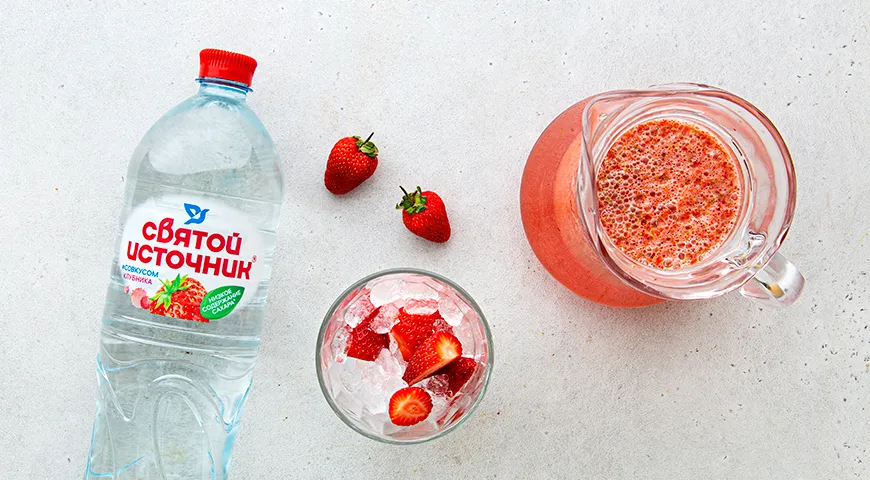 Вода «Святой Источник» #совкусом хороша не только в чистом виде: она идеально подходит для приготовления летних напитков. Например, «Святой Источник» #совкусом Клубника позволит легко приготовить вкусный и полезный холодный клубничный чай. Этот ароматный напиток с ягодным ароматом понравится всей семье. При этом рецепт приготовления очень прост и не займет много времени.