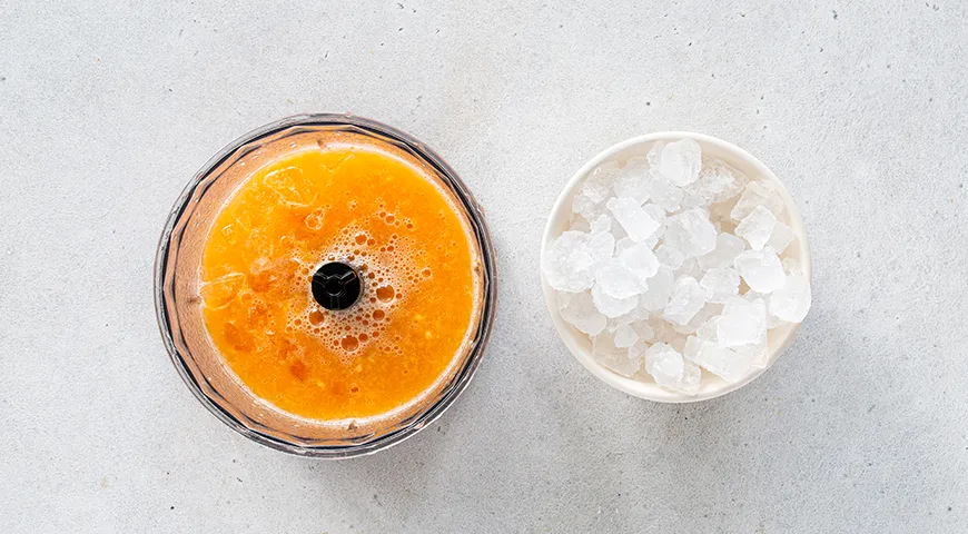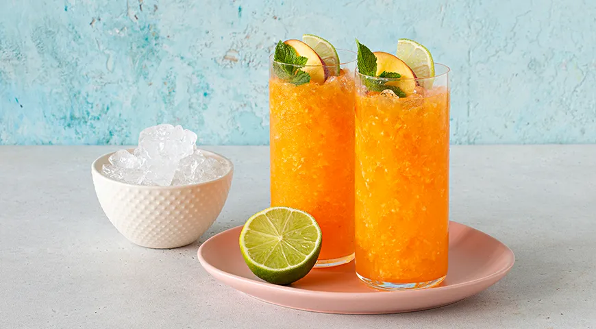 - Добавьте в блендер лёд и пробейте ещё раз до однородности. Подавайте с долькой лайма и настраивайтесь на чистоту вкуса с яркой фруктовой новинкой бренда Святой Источник!