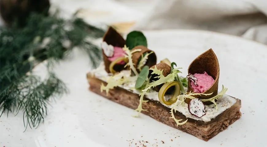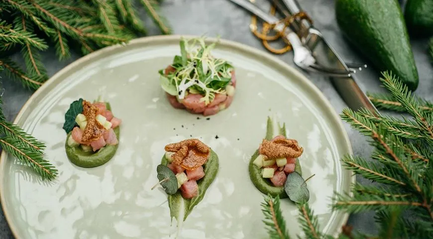 На закуску закажите тартар из тунца с гуакамоле (420 руб.) или холодец из бычьих хвостов (380 руб.).